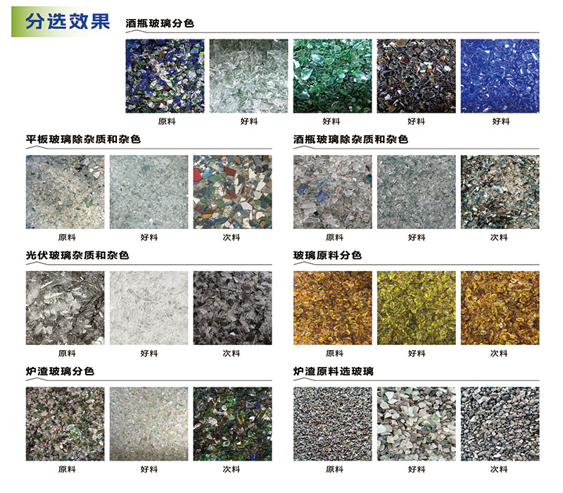 5.可干湿分选技术;可分选带水或表面湿润的玻璃料,拓宽应用场景,实现全流程无缝衔接,节能增效。